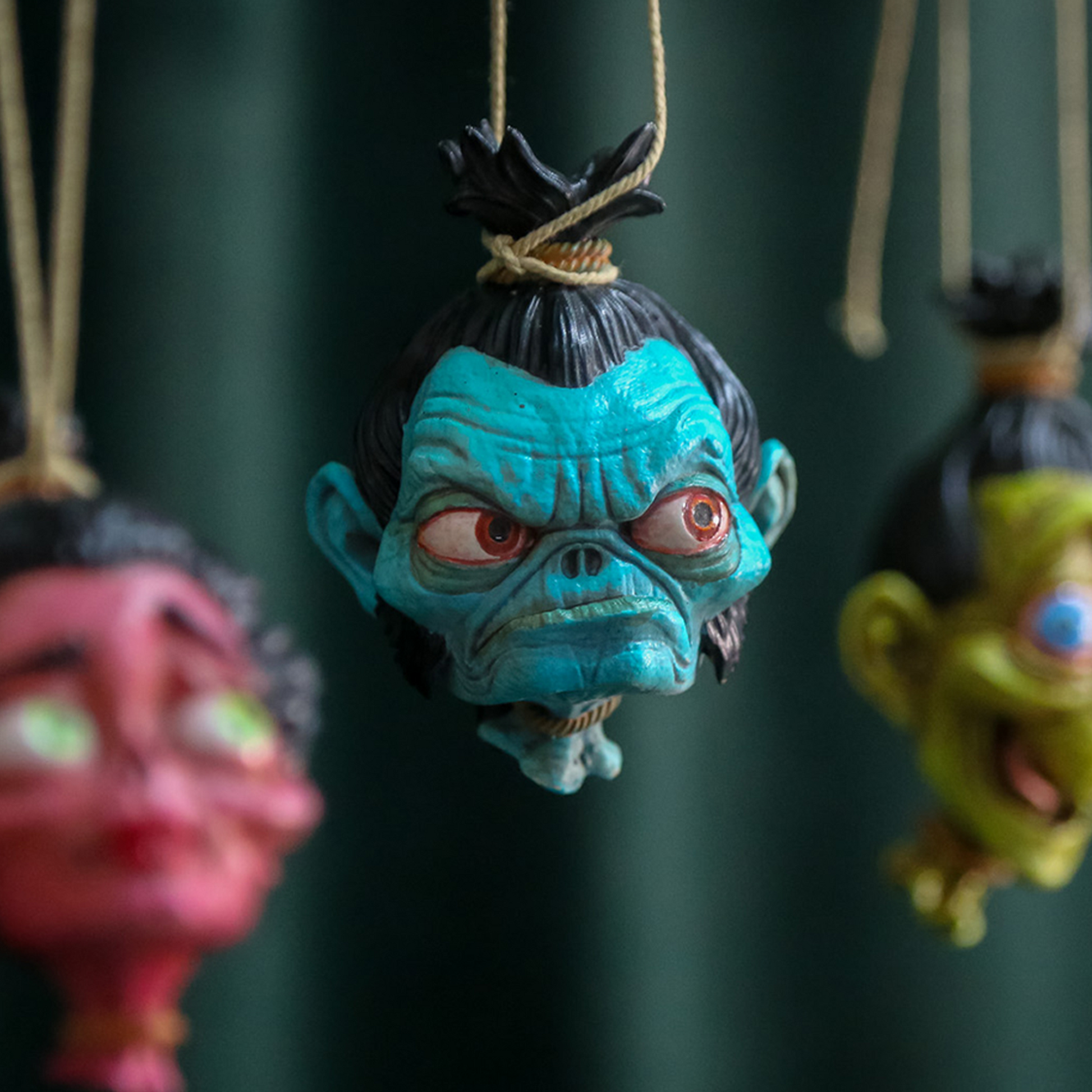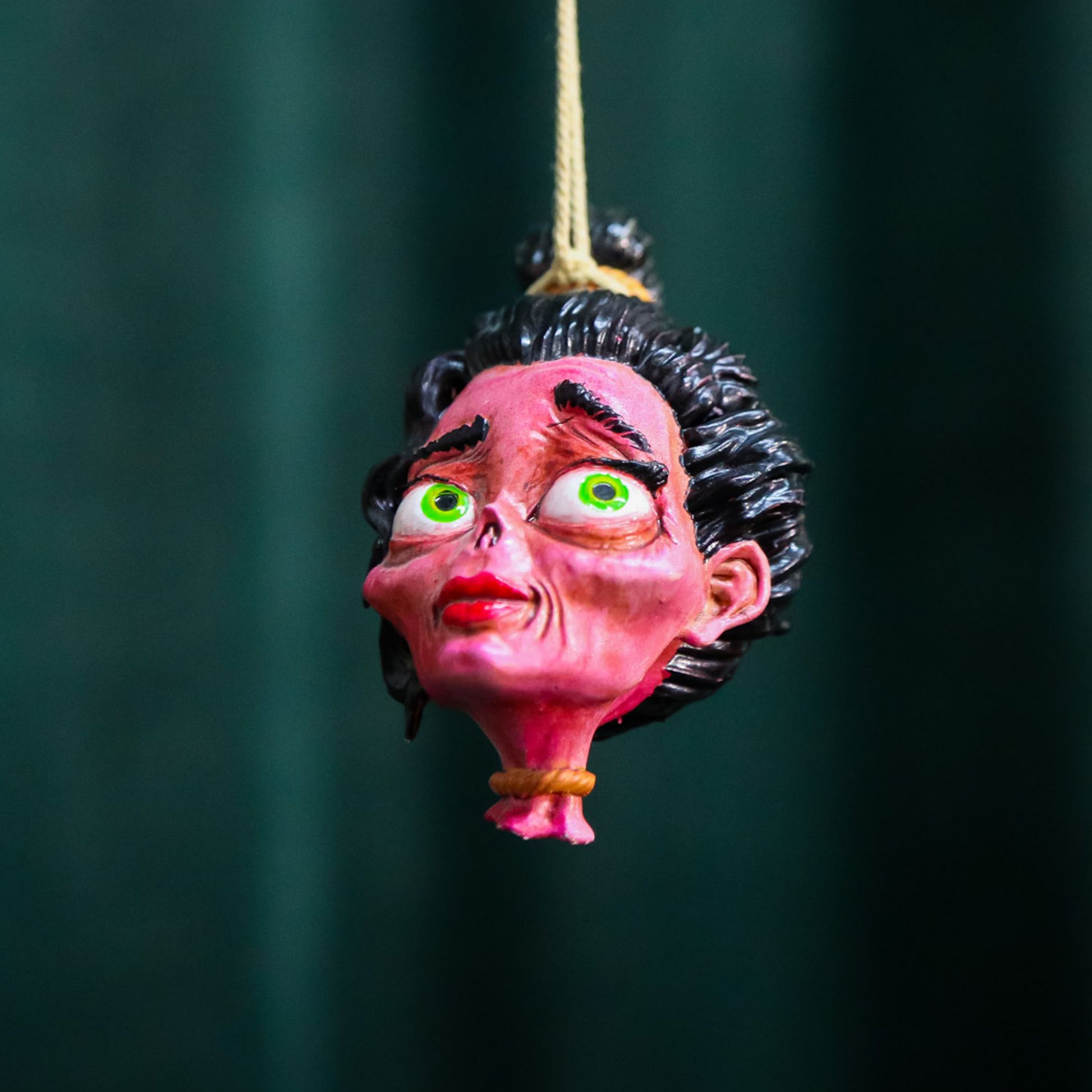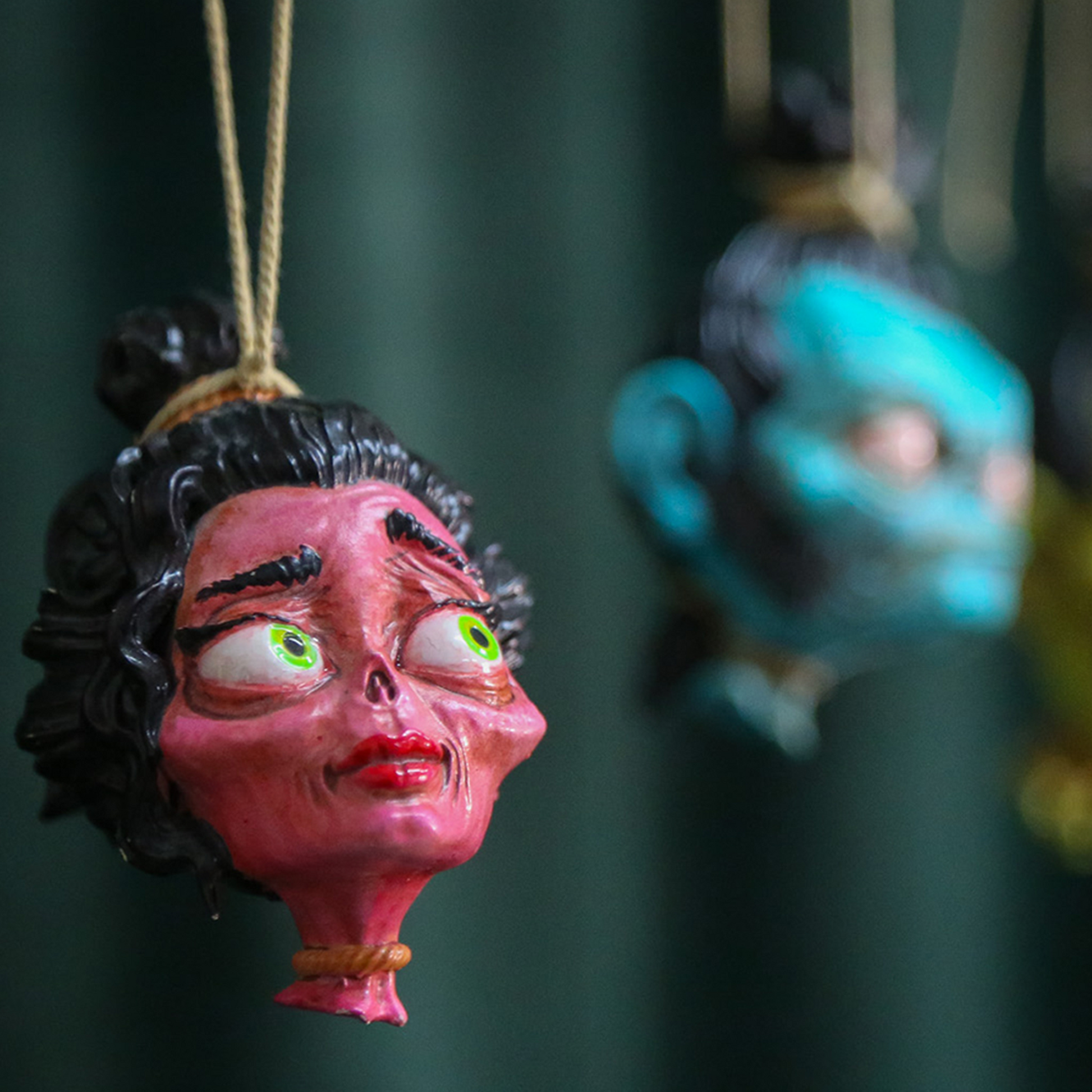 Hand painted and lovingly crafted, this trio of shrunken heads will talk up a storm! These heads are approximately 3.5", making the perfect ornament for display cases, Christmas trees, or attics filled to the brim with the spoils of travel.
