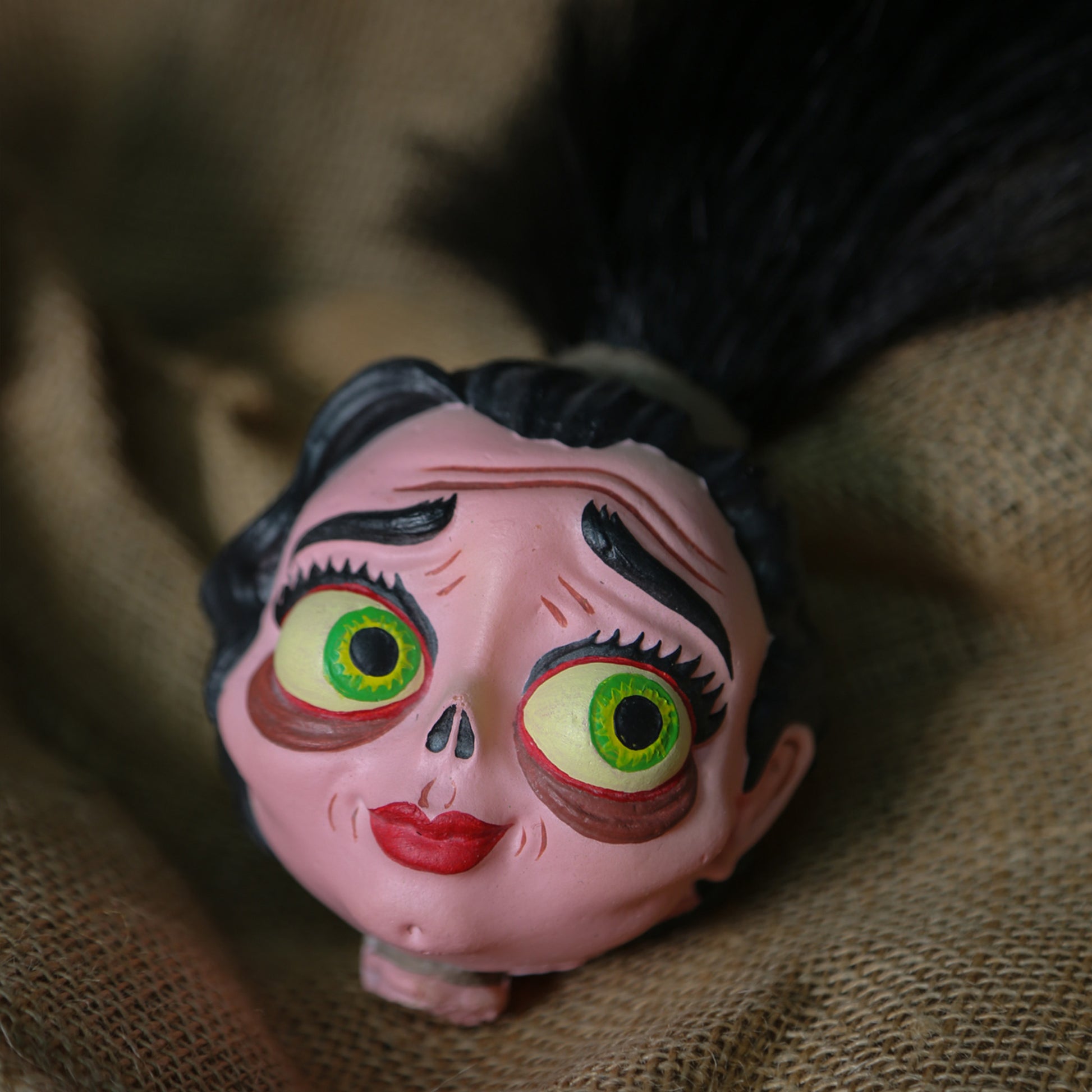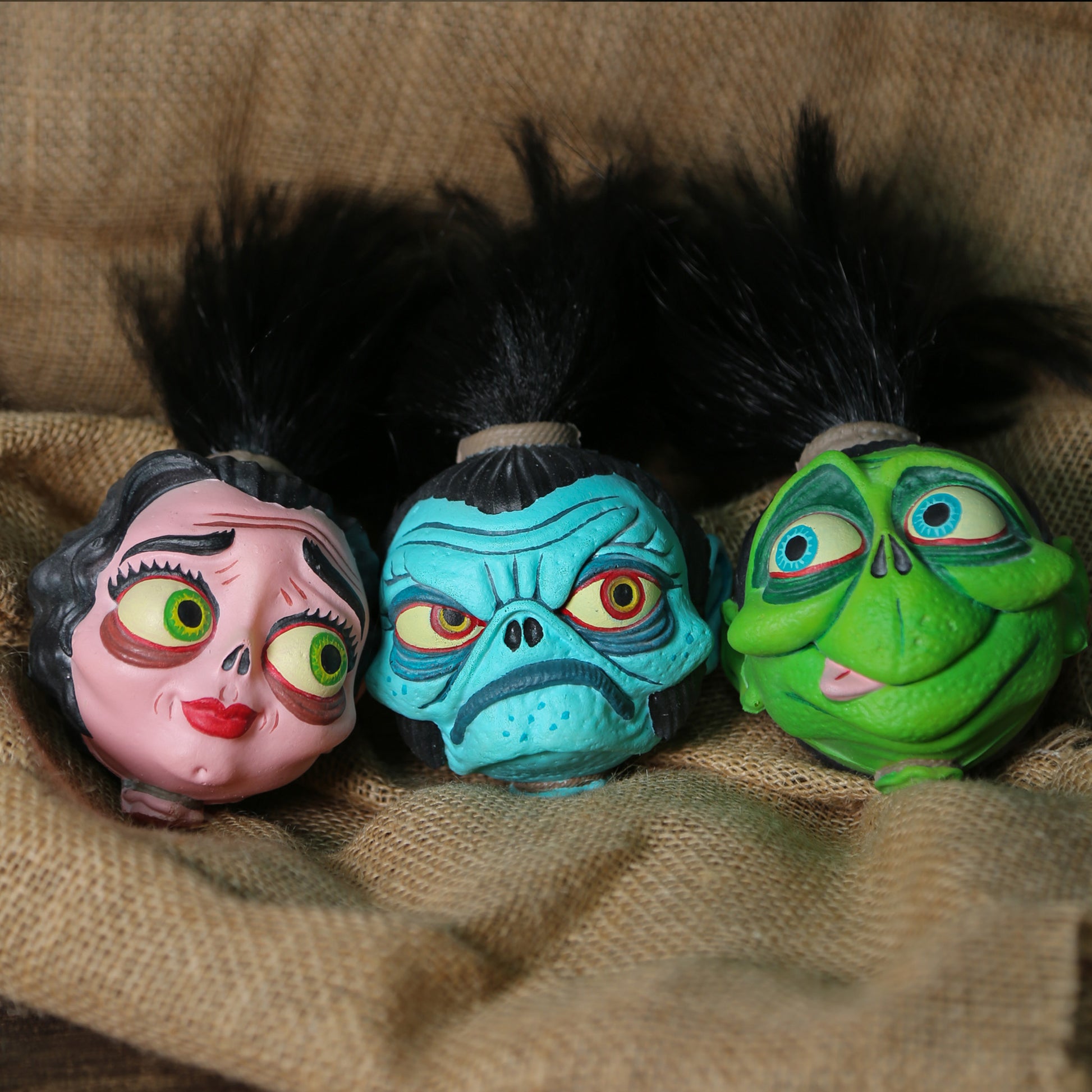 Hand painted foam with lifelike hair, these little heads will go perfect in any location! Buy one, or bundle the three together!